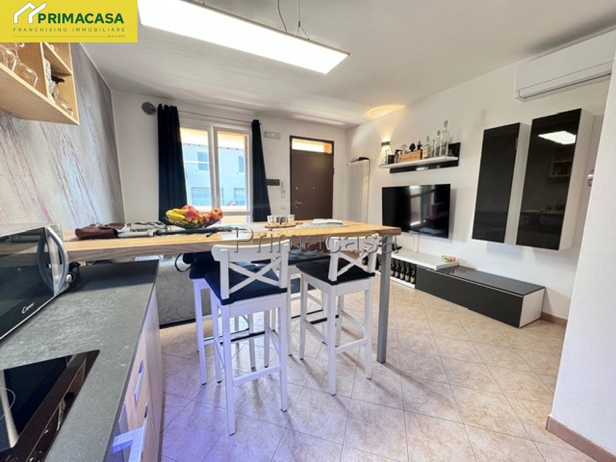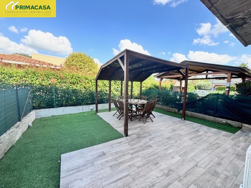 In contesto di 6 unita' abitative, appartamento trilocale al piano terra con ingresso indipendente, giardinetto esclusivo sul retro e annesso garage singolo al piano interrato.